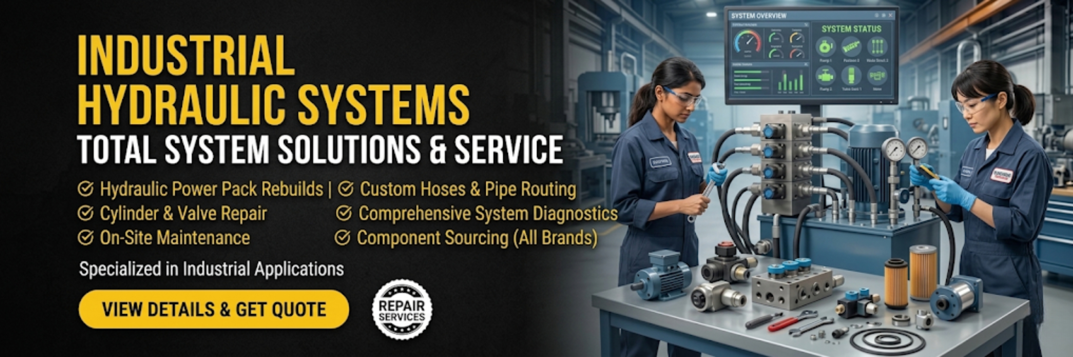 We provide Hydraulic Power Packs, Industrial Hydraulic Cylinders, Hydraulic Systems, Maintenance Services, and Repairing Solutions for various industrial applications.